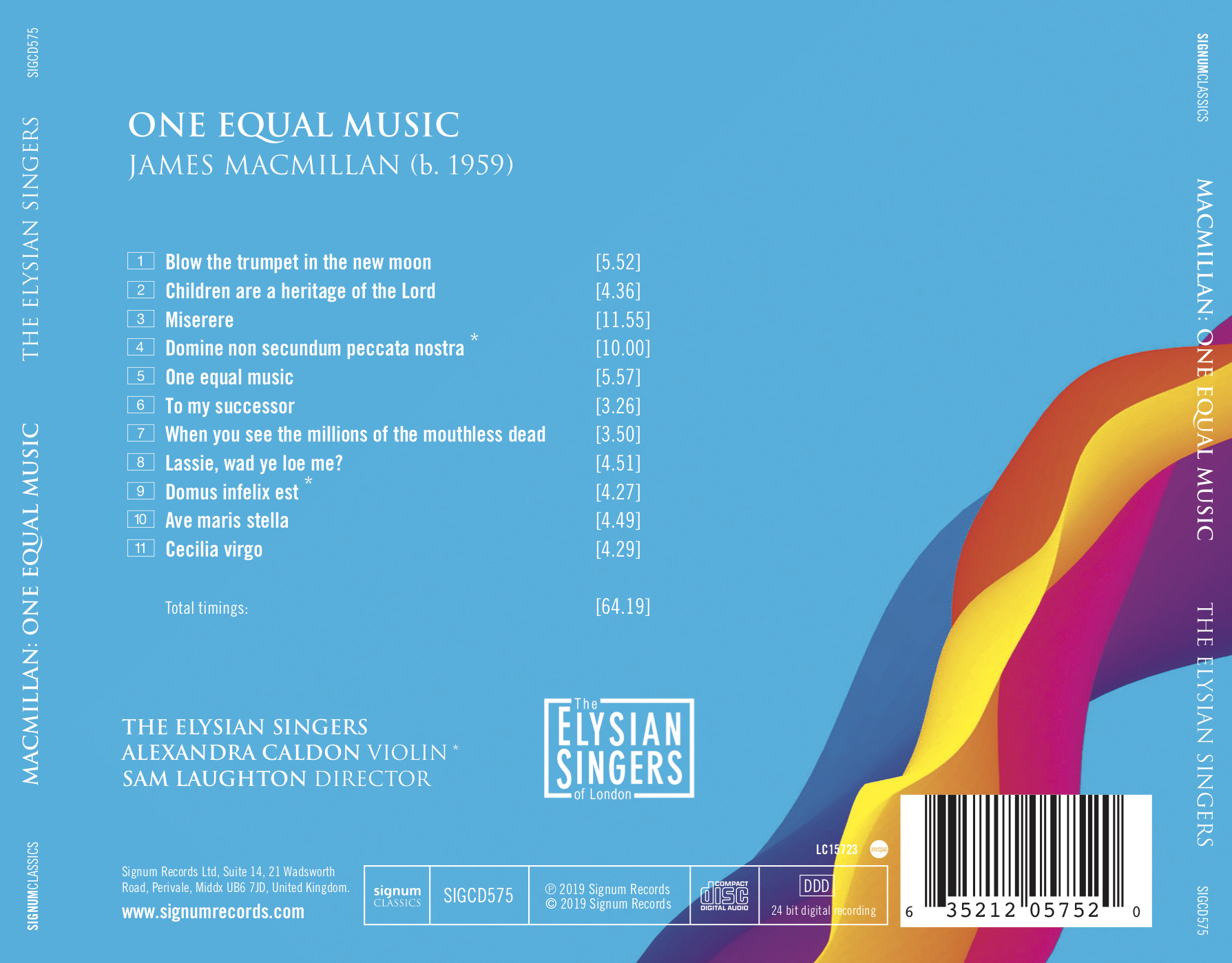 The Elysian Singers of London is one of the UK’s leading chamber choirs. Known for its adventurous programming, the choir performs in and around London and has recorded many widely acclaimed CDs. This is the choir’s second recording of works by James MacMillan, following their critically-acclaimed first disc with Signum Cantos Sagrados.